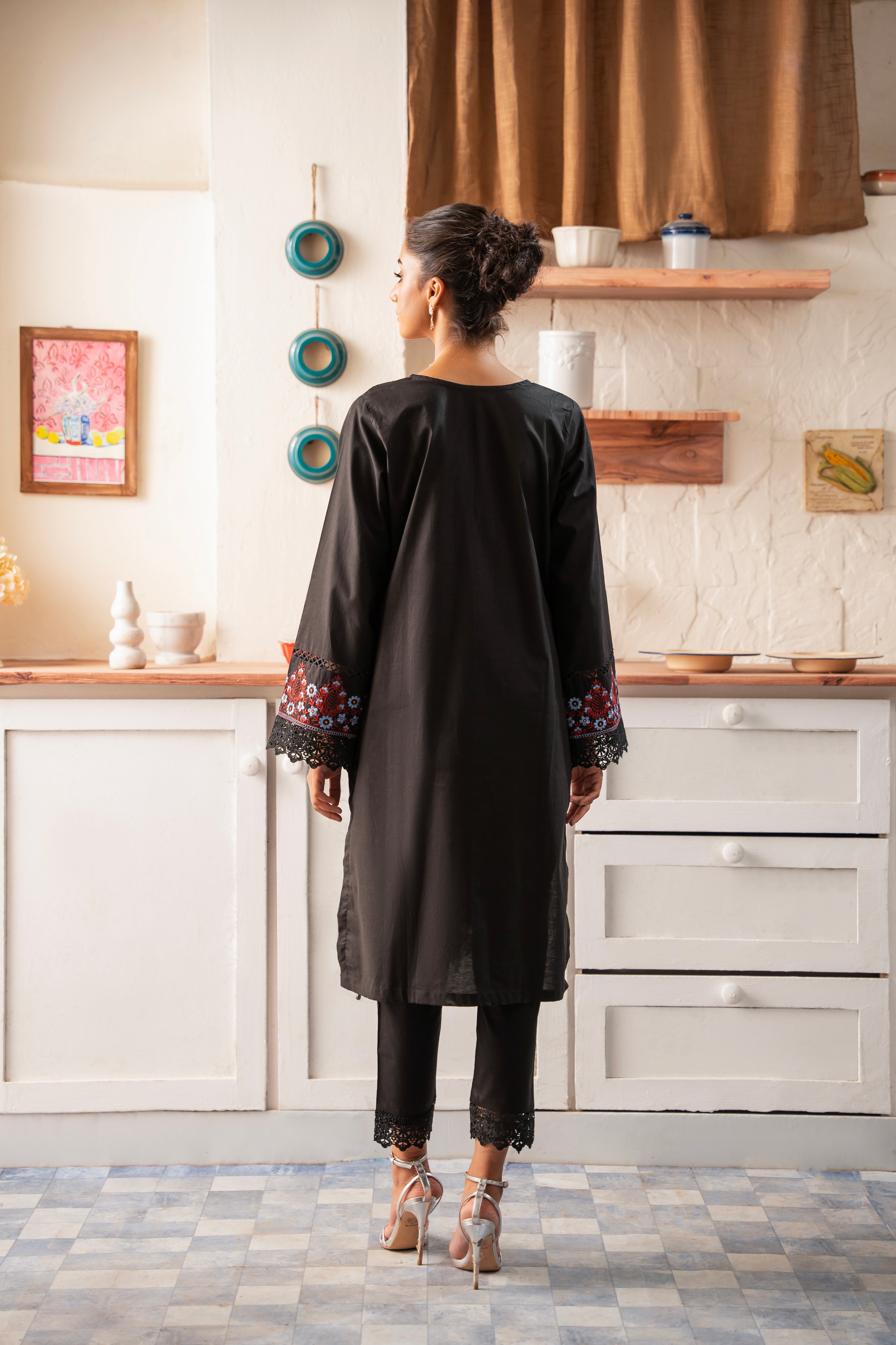 • It is adorned with embellishments along the front, with a beautifully detailed neckline and sleeve openings.