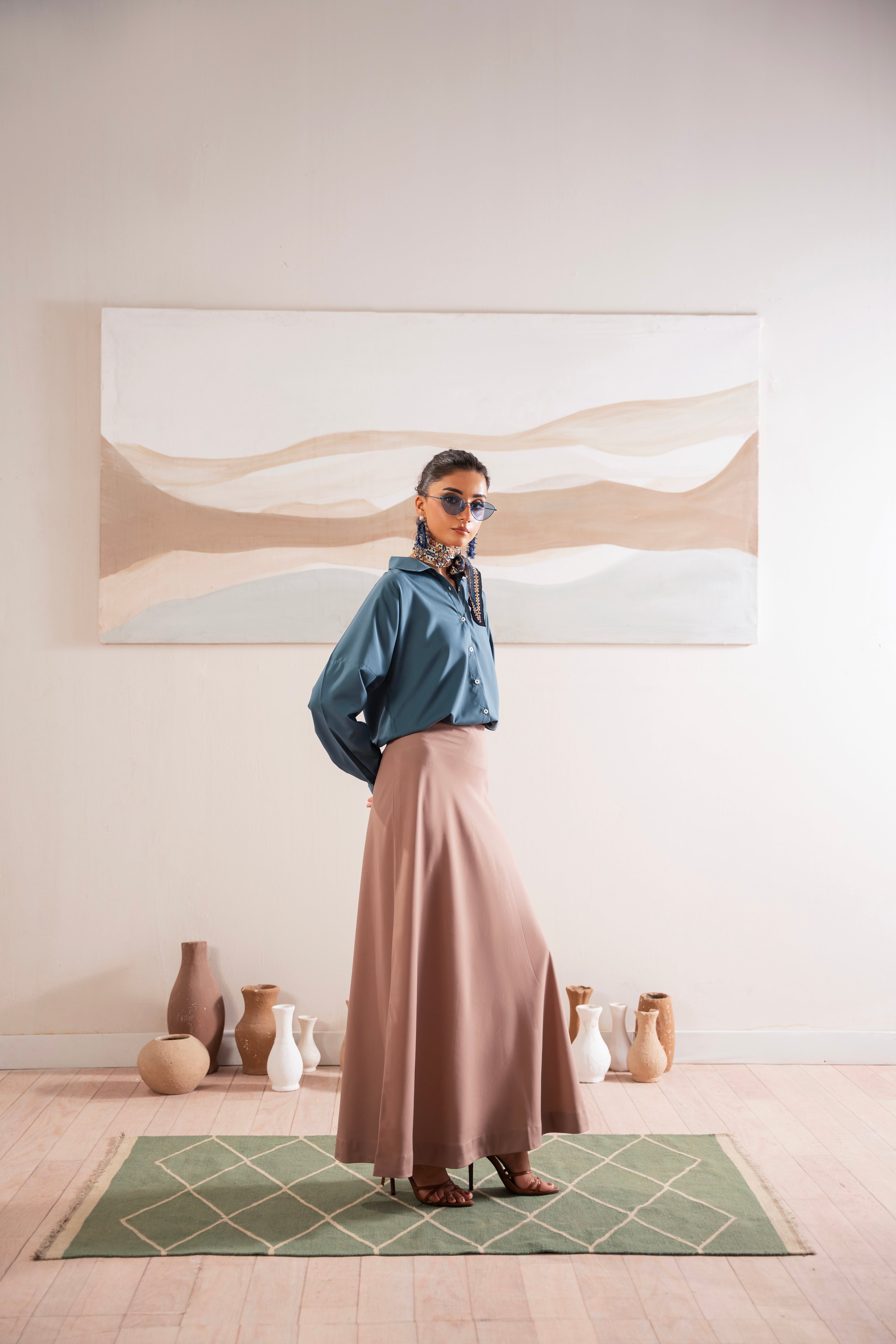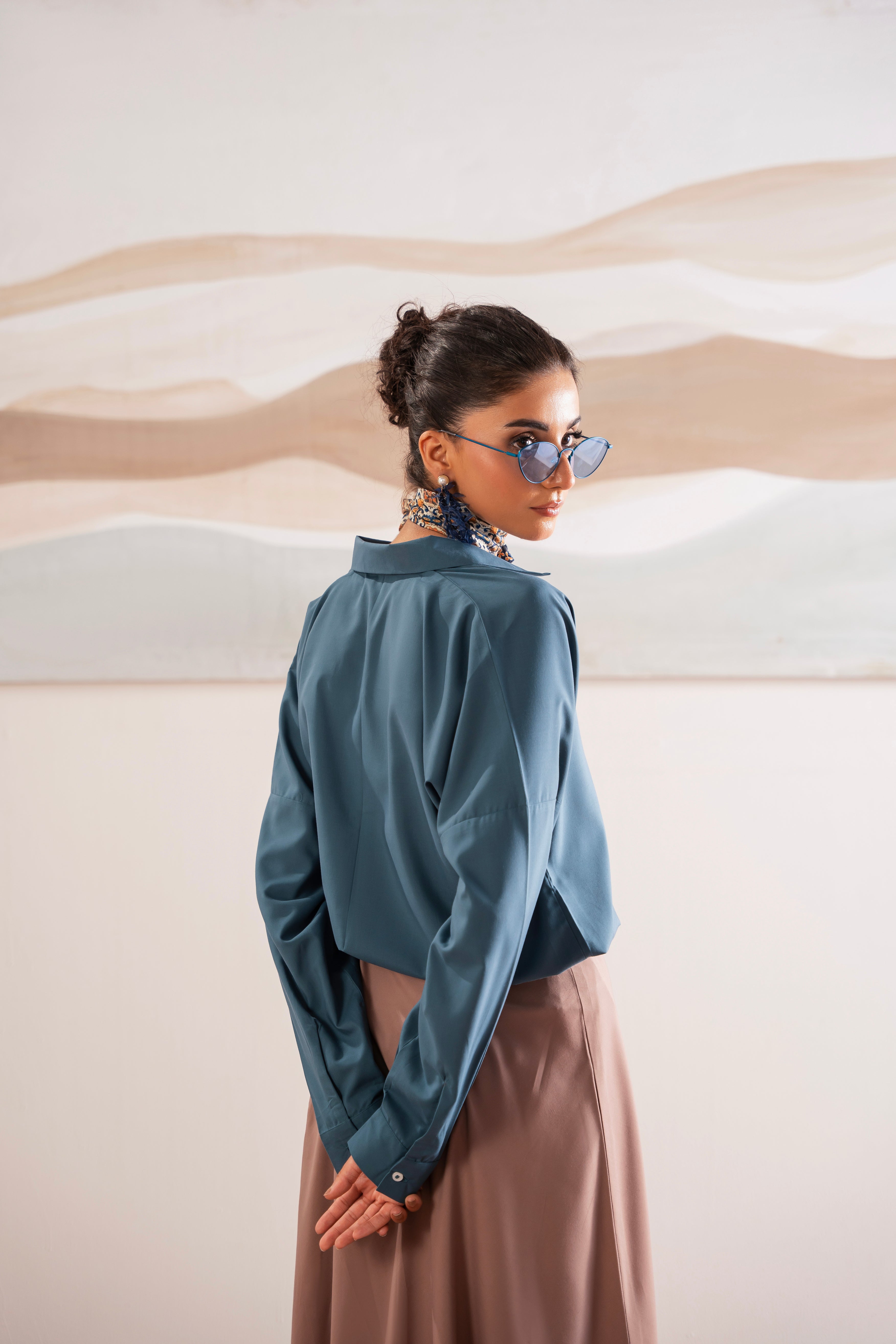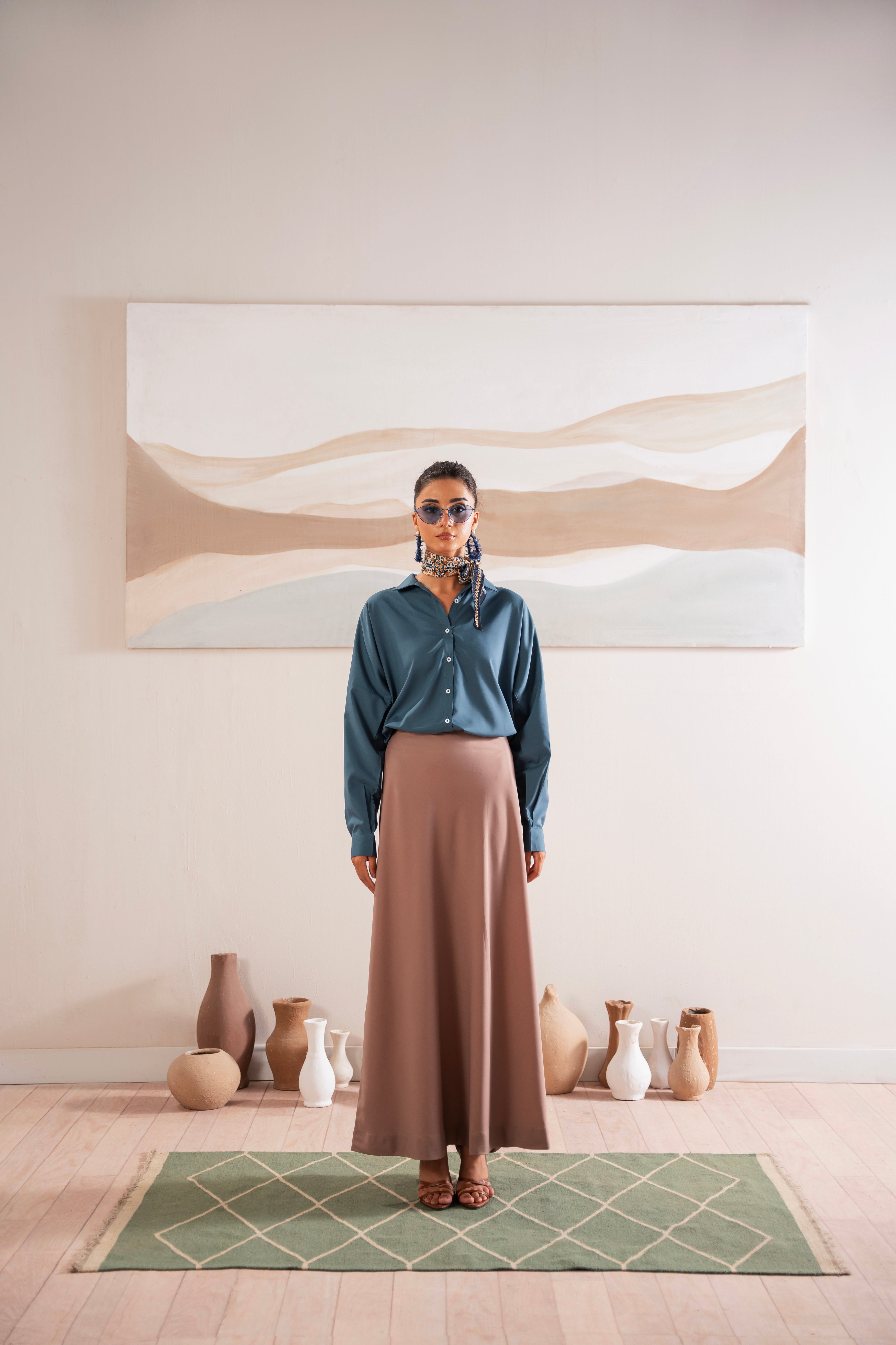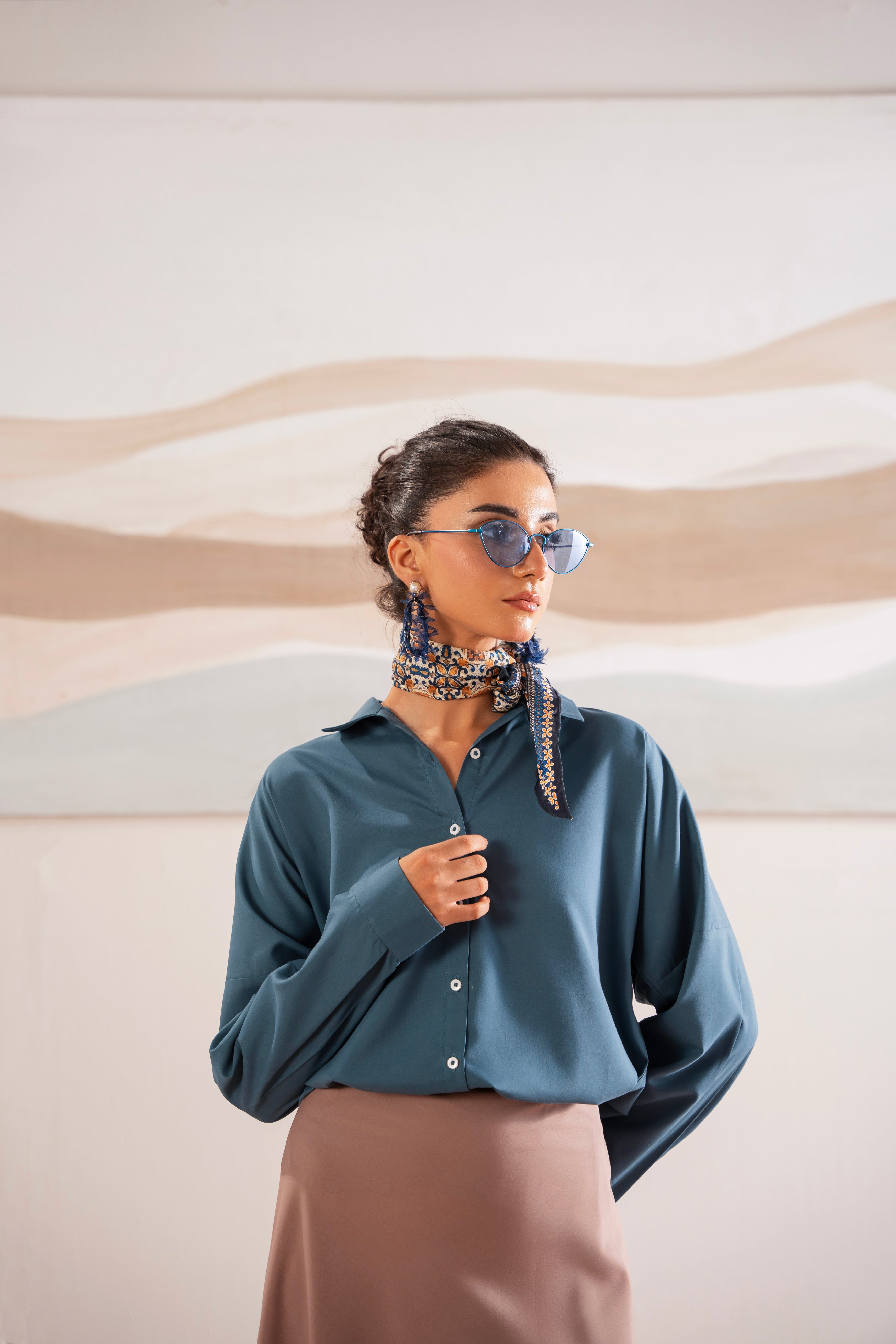 This two-piece dress includes a stylish frock and tailored trouser. This dress is crafted from our new soft crepe fabric, known for its sweat-absorbing properties, ensuring comfort throughout the day. Designed to blend contemporary Western styles with subtle traditional touches. The dress is shown here in size small, perfectly fitted on the model. Length of Shirt, Sleeve Opening & Shirttail are as per Design. Actual color may vary slightly from what appears on your screen due to lighting.