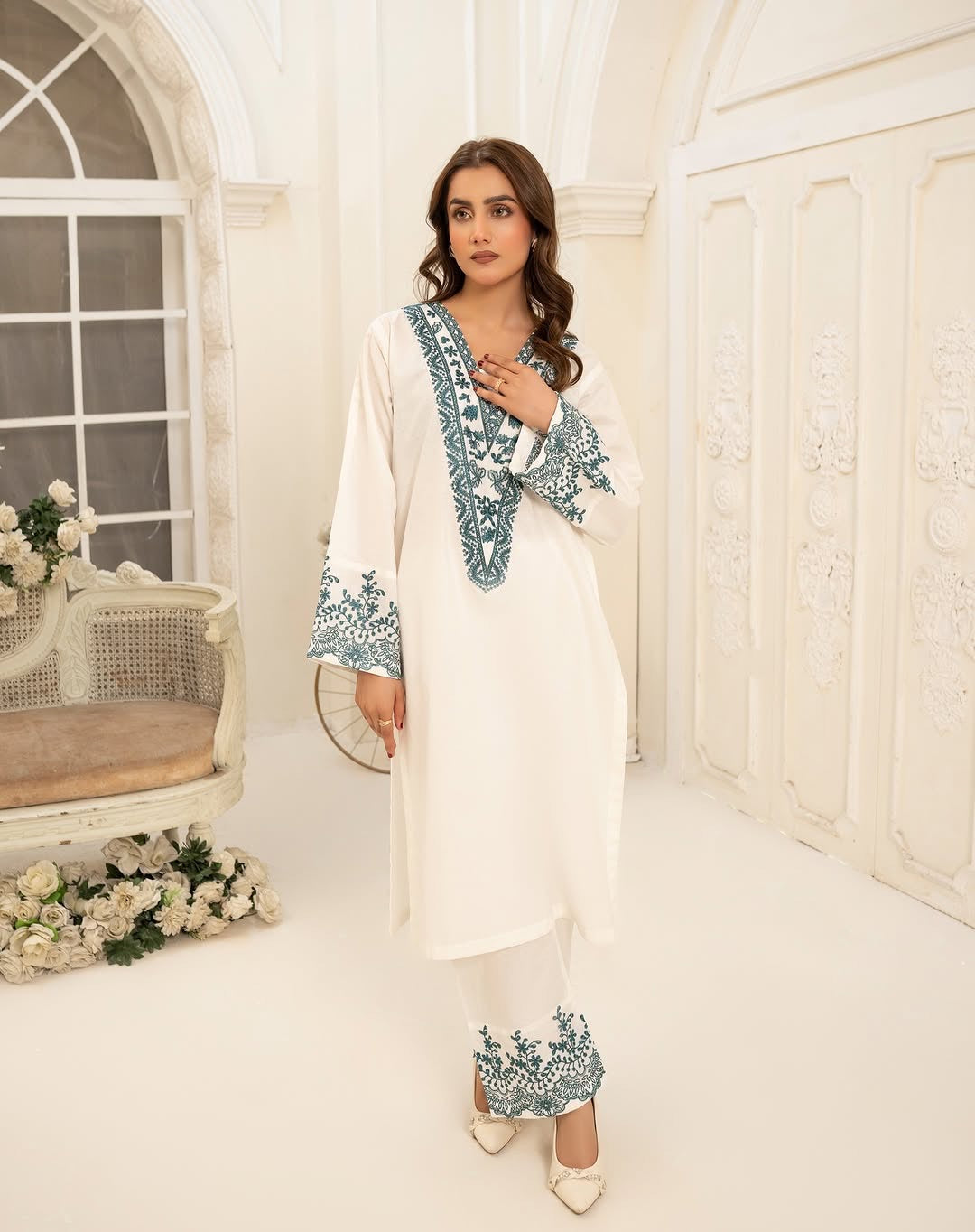 ✔ Design: A 2-piece set (kurta + trousers/shalwar) with a tailored fit and contemporary silhouette.