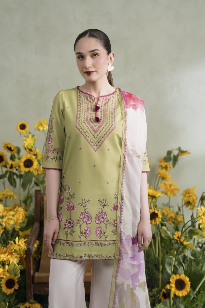 ✔ Design: A 3-piece set (kurta + dupatta + straight-trousers/shalwar) with a modern, relaxed fit.