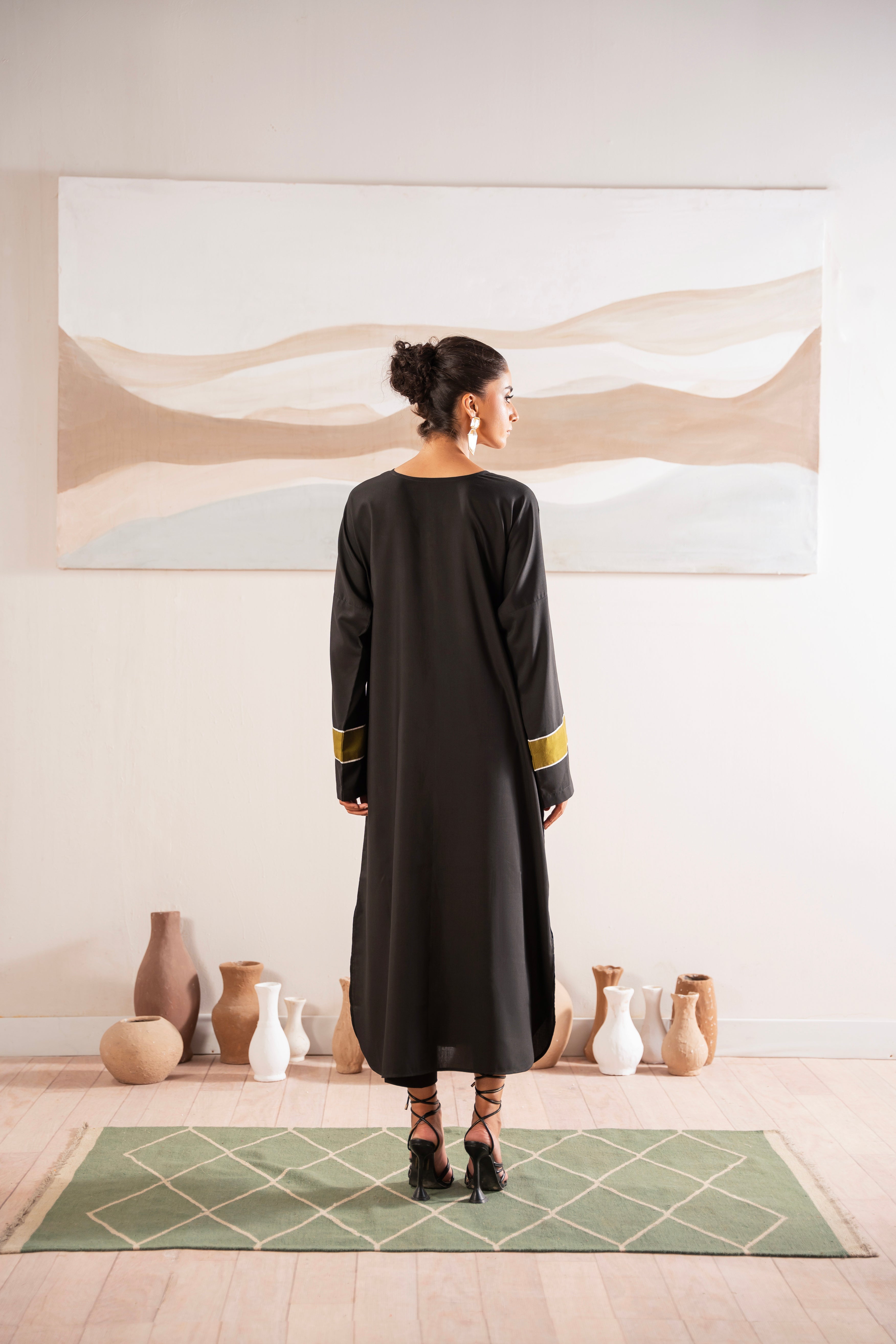This two-piece dress includes a stylish frock and tailored trouser. This dress is crafted from our new soft crepe fabric, known for its sweat-absorbing properties, ensuring comfort throughout the day. Designed to blend contemporary Western styles with subtle traditional touches. The dress is shown here in size small, perfectly fitted on the model. Length of Shirt, Sleeve Opening & Shirttail are as per Design. Actual color may vary slightly from what appears on your screen due to lighting.