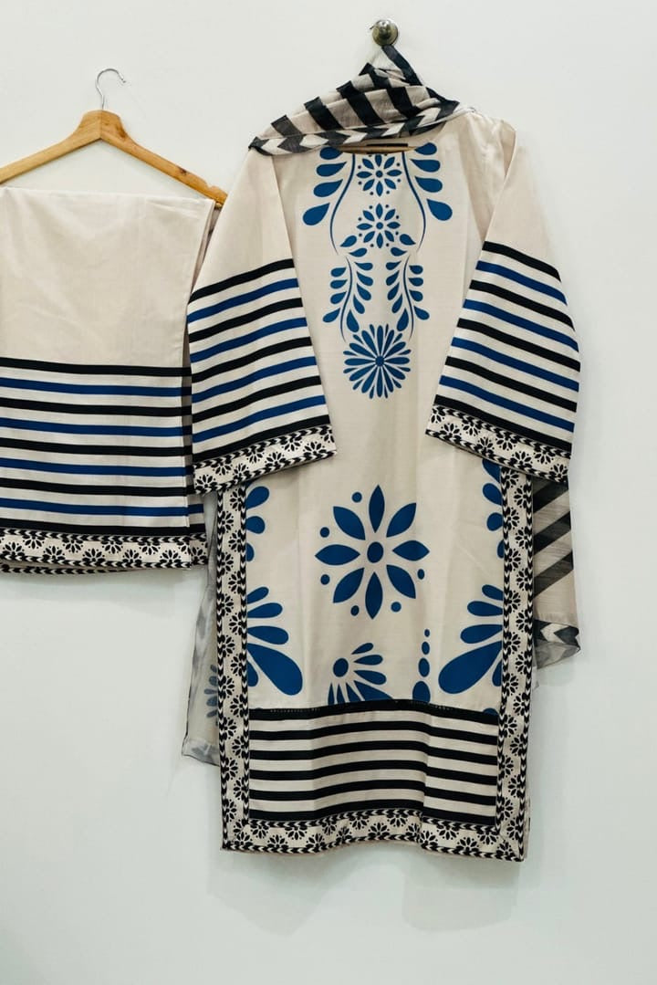 ✔ Design: A 3-piece set (kurta + Dupatta + straight-trousers/shalwar) with a modern, relaxed fit.